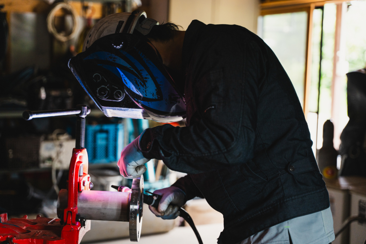 架台や配管の加工及び制作、また現場での溶接作業にも対応しております。